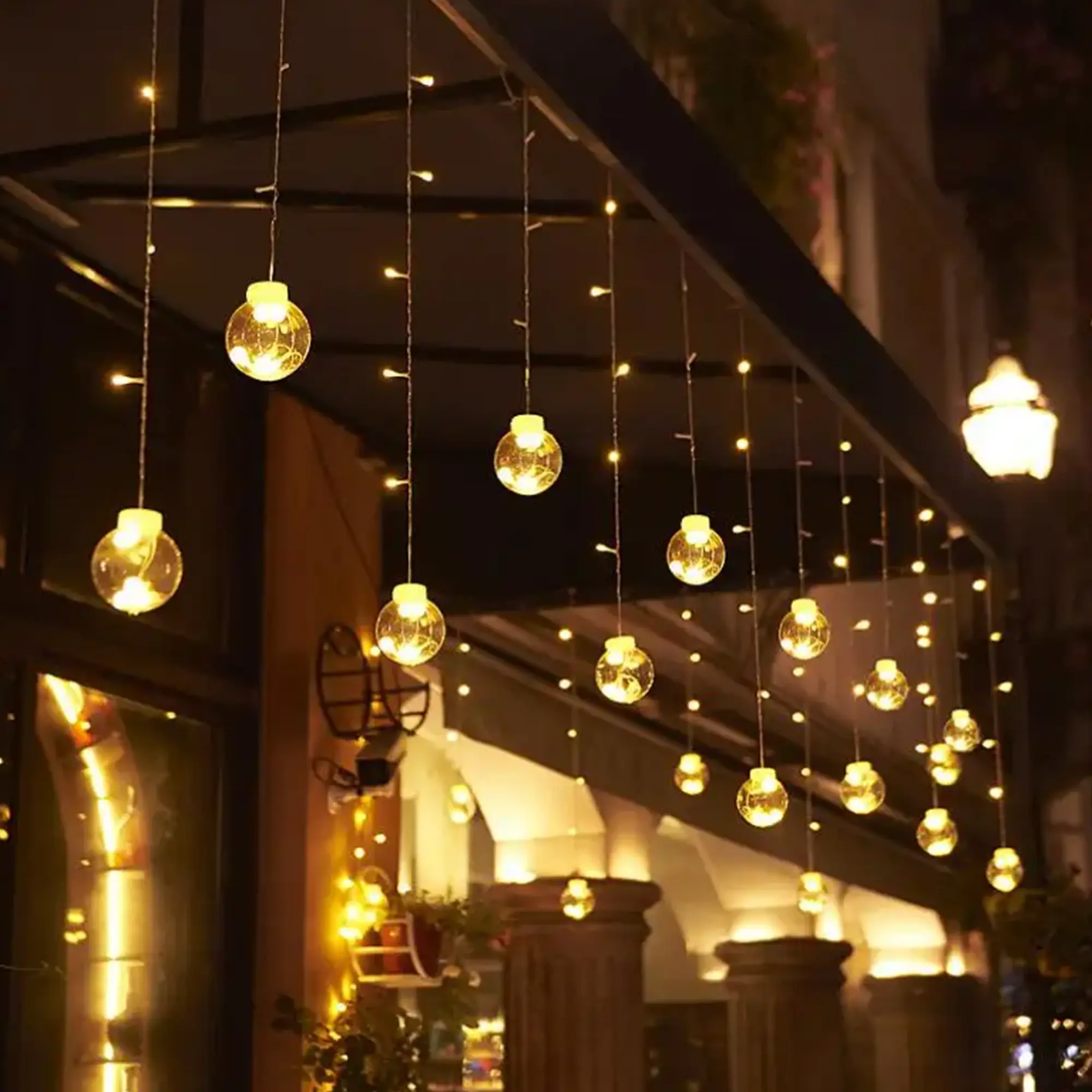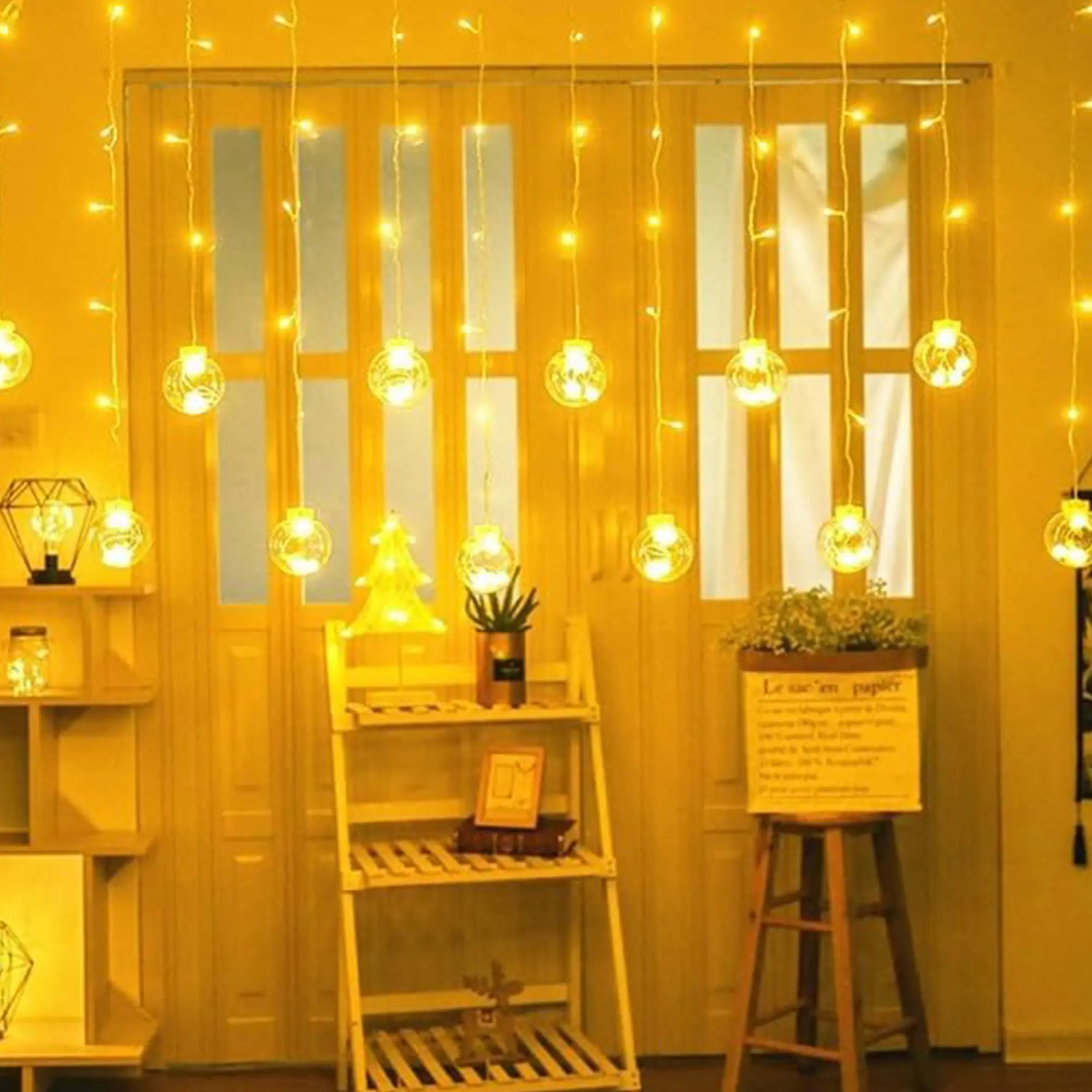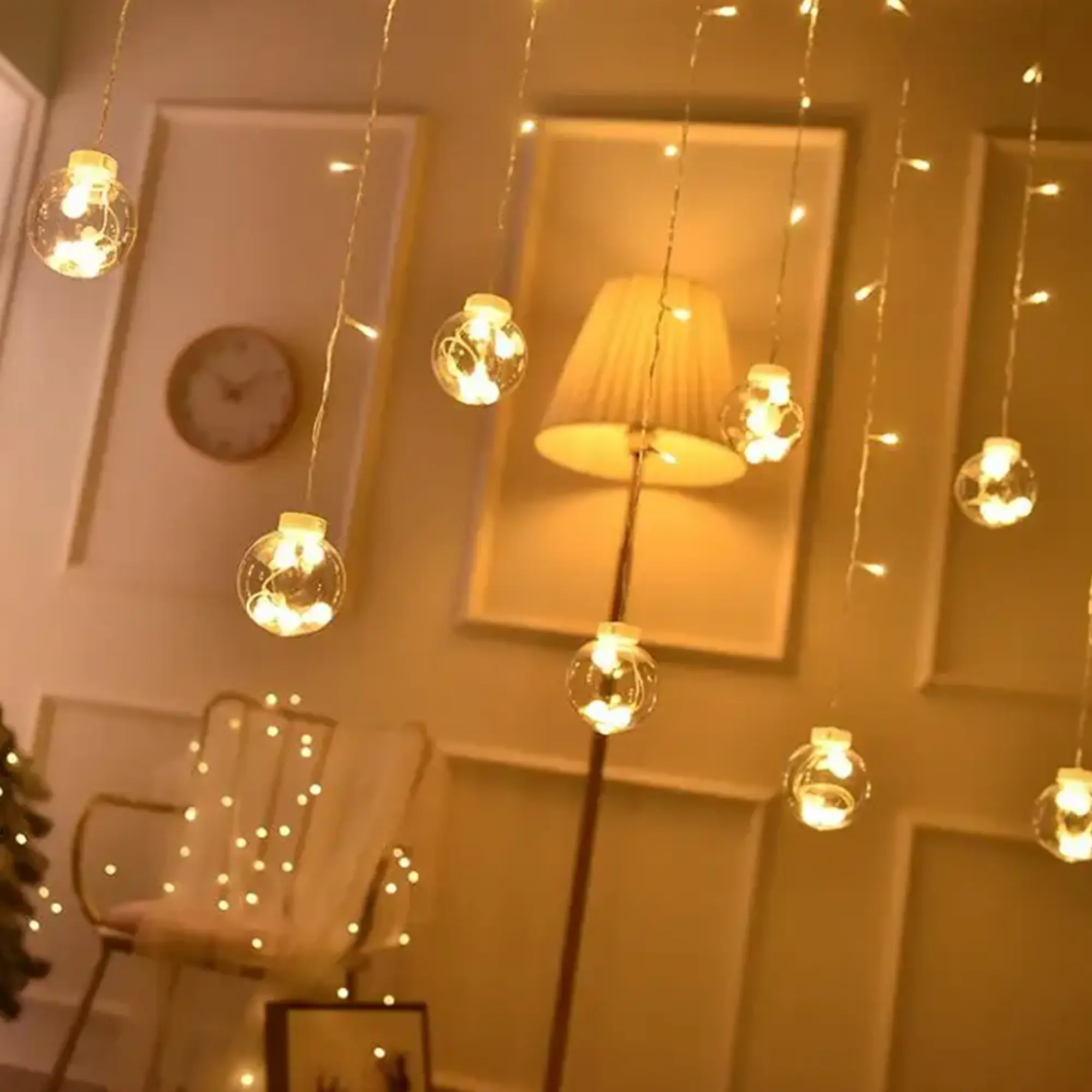 10 Wishing Balls Curtain With 8 Lighting Modes Operated for Window Wall Home Decoration 1.32 m Yellow Steady Ball Festival Lights