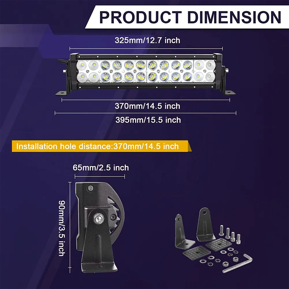 72W 12 Inches Light Bar Combo Light, Floodlight, Spotlight, IP67 Waterproof Resistance with Aluminum Housing Material
