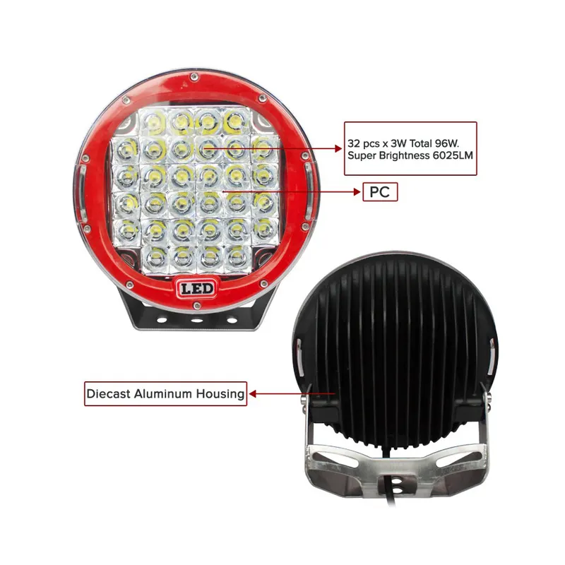 - High quality LED chips, 32 LED x 3W/LED (Total 96W power)