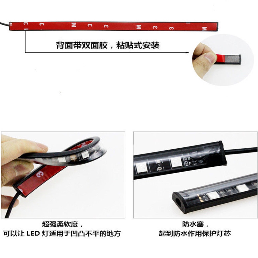 - Material: High quality PVC Rubber. Double-sided adhesive tape is on each lamp back, non-destructive, and easy installation. Super-bright, running with low temperature. Universal design, it will start work as soon as there is cigarette light.