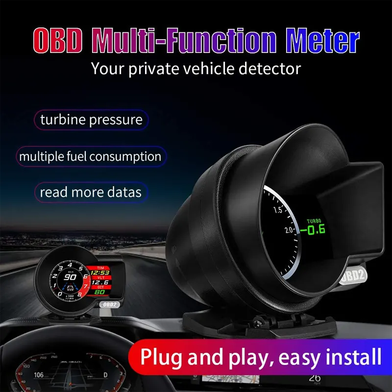 Car OBD2 gauge, which can display the car driving speed, driving direction, clock, mileage, trip time, etc, and keep the driver’s eyes always on road to avoid the danger of lowering down head to read the dashboard.