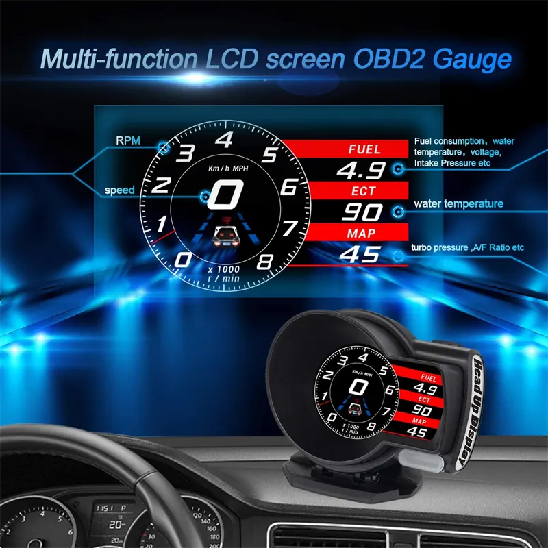 This is a new generation hi-tech driving computer, on named HUD display, a safety driving assistant alarm system and OBD2 diagnostic tool of a modified car.