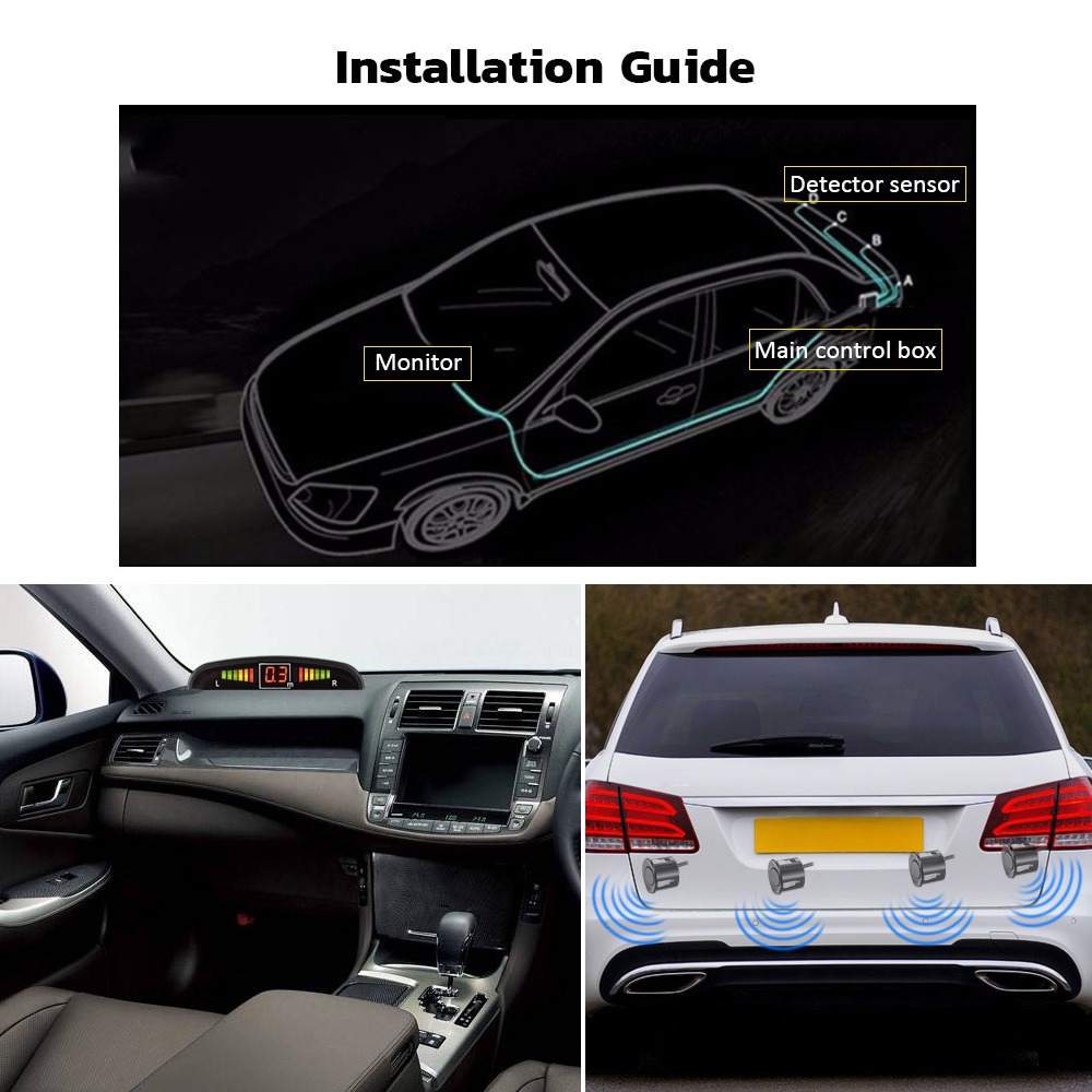● Reversing parking detector sensor and alarm system: with the vocal notification of beeping (will become more rapid with the distance becoming closer), install to prevent your car from corner colliding and impacting while reversing or parking.