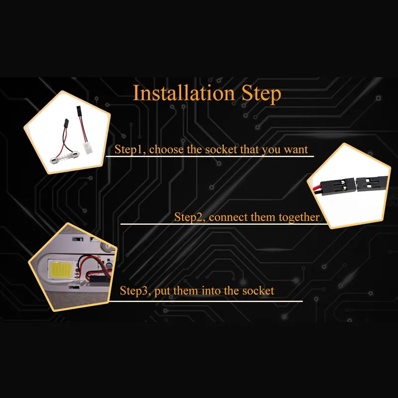 - Dome light, reading light, wedge bulbs, dashboard lights, interior lights, turn signal light, corner light, parking light, license plate light, side marker light, tail light, backup lights, etc.