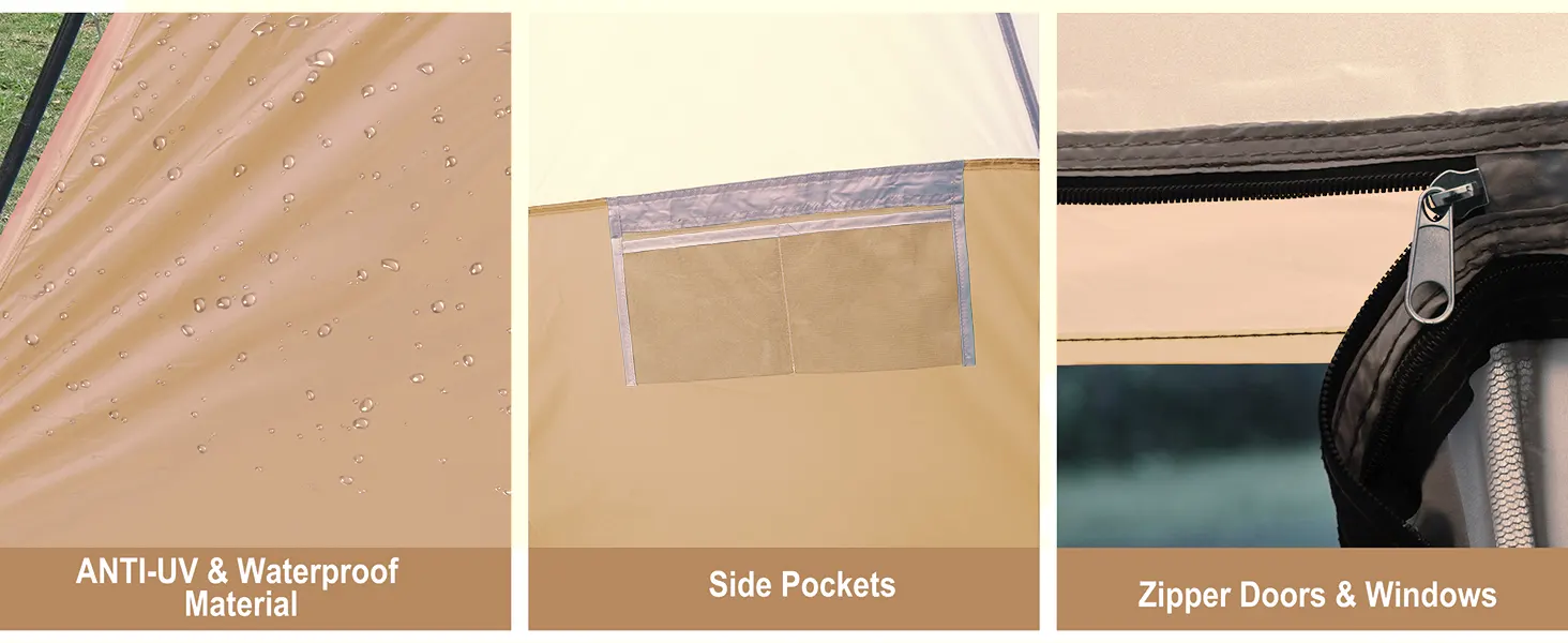 - ROOMY INTERIOR: Straight wall design with 72in/180cm center height create more space to stand up changing and move.