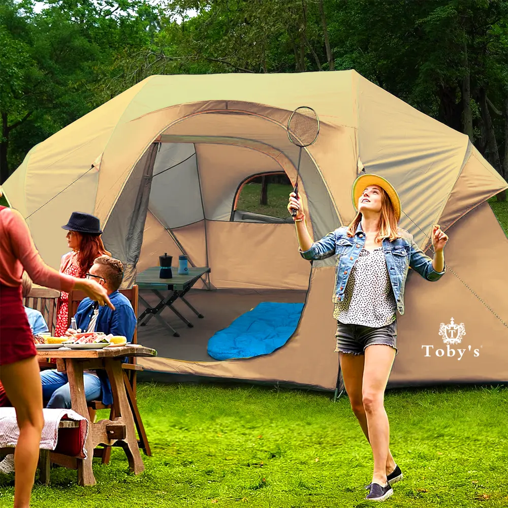 Toby’s Tent 6-8 Person Camping Tents, Weather Resistant Family Tent, 2 Large Mesh Windows, Double Layer, Divided Curtain for Separated Room, Portable with Carry Bag ( Big)