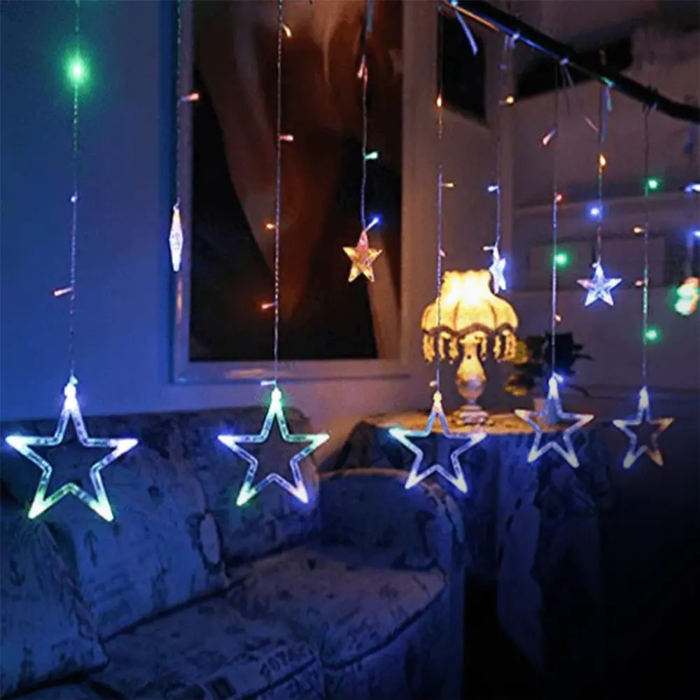 - 6 giant stars & 6 small stars Design Curtain Festival Light, these LED lights are extremely durable, long-lasting, and highly energy efficient.