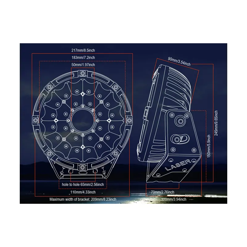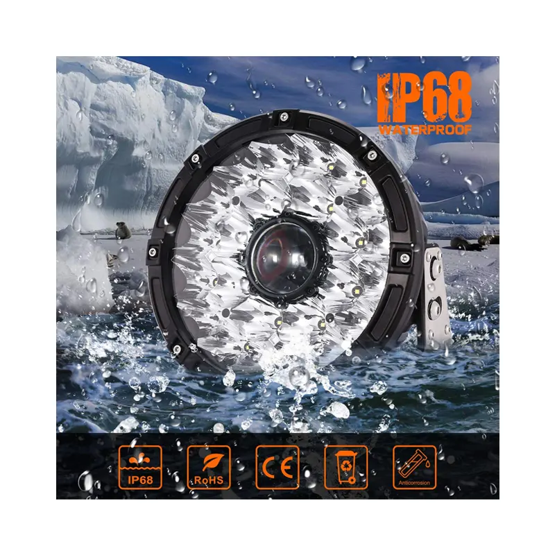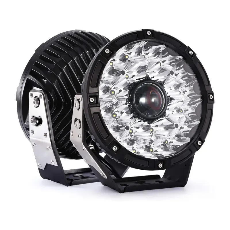 - Pair 9 x 9-inch round spot off-road work lights, with 24pcs High-Intensity Chip and laser chip, which emit super bright light as far as 2000 meters, helping you see the forward trip clearly, also they are very easy to install.