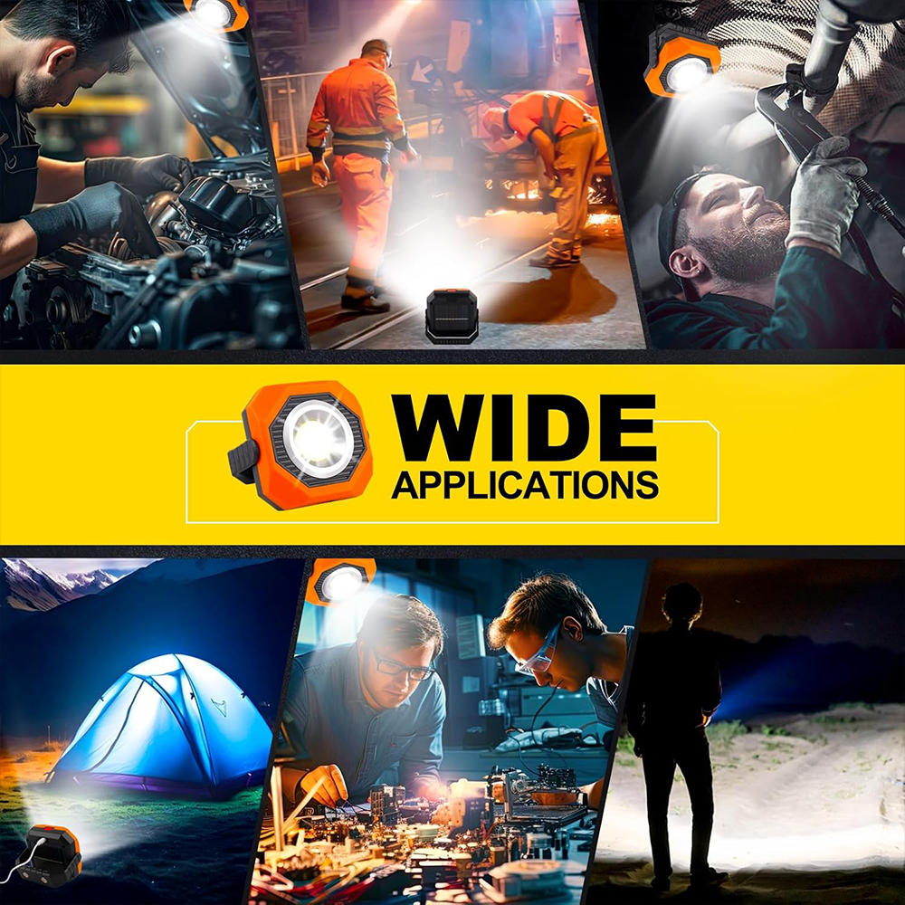 - 【Multiple Uses】 Our Rechargeable led work light is suitable for home lighting, outdoor, workshop, car maintenance, camping, hiking, power outage and emergency lighting, and other daily activities at night.