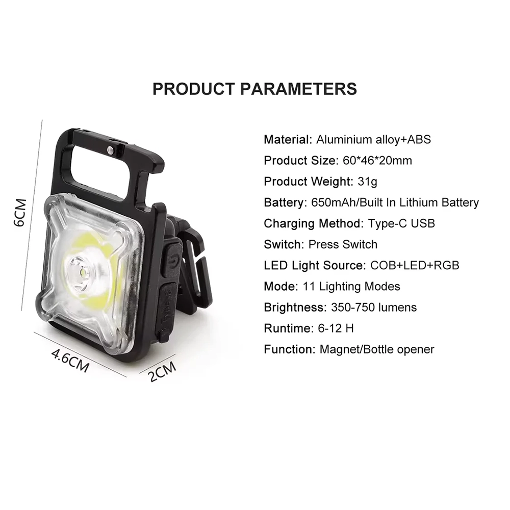 The small portable flashlight can be easily clipped to a key or bag, and it is waterproof and shockproof. It also makes a great bottle opener. It can be used in a variety of scenarios, such as camping, walking the dog, finding things, repairs, etc.