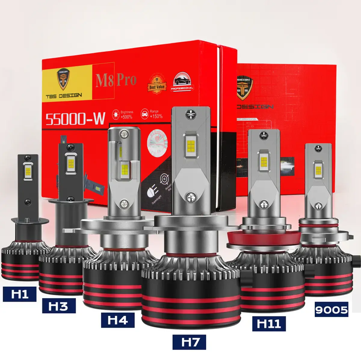 TBS DESIGN M8Pro H11 2 Pieces Car LED Headlight Original 110W/Pair Power Pure White 6000K Color Temperature