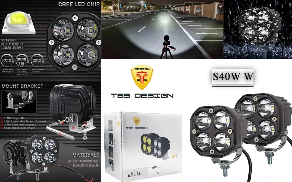 TBS S40 Yellow Waterproof Driving Off-Road Work Lights LED White Driving Fog Lights 2 Pieces Of 3 Inch 40W For Off-Road 4X4 Jeep