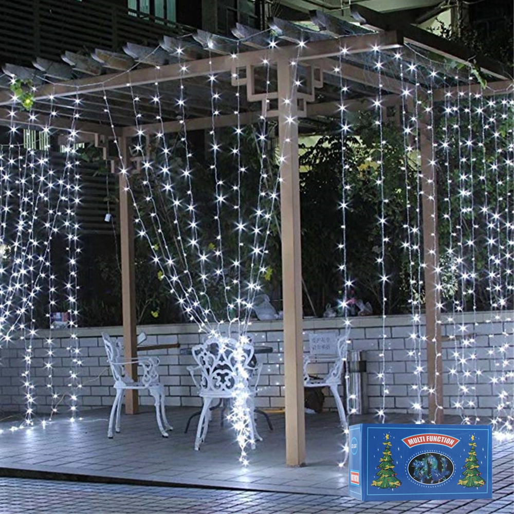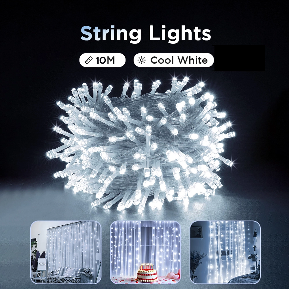 - Toby’s 10M Multi-Function Curtain String Lights illuminate spaces with cool white brilliance, creating a magical atmosphere for homes, parties, and festive occasions.