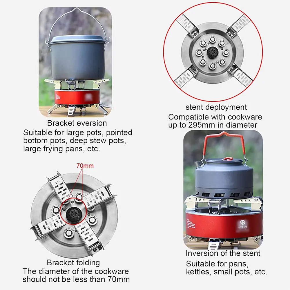 - Multi-function——Our backpack stove’s adaptive bracket makes it compatible with pans, stewpans, etc.