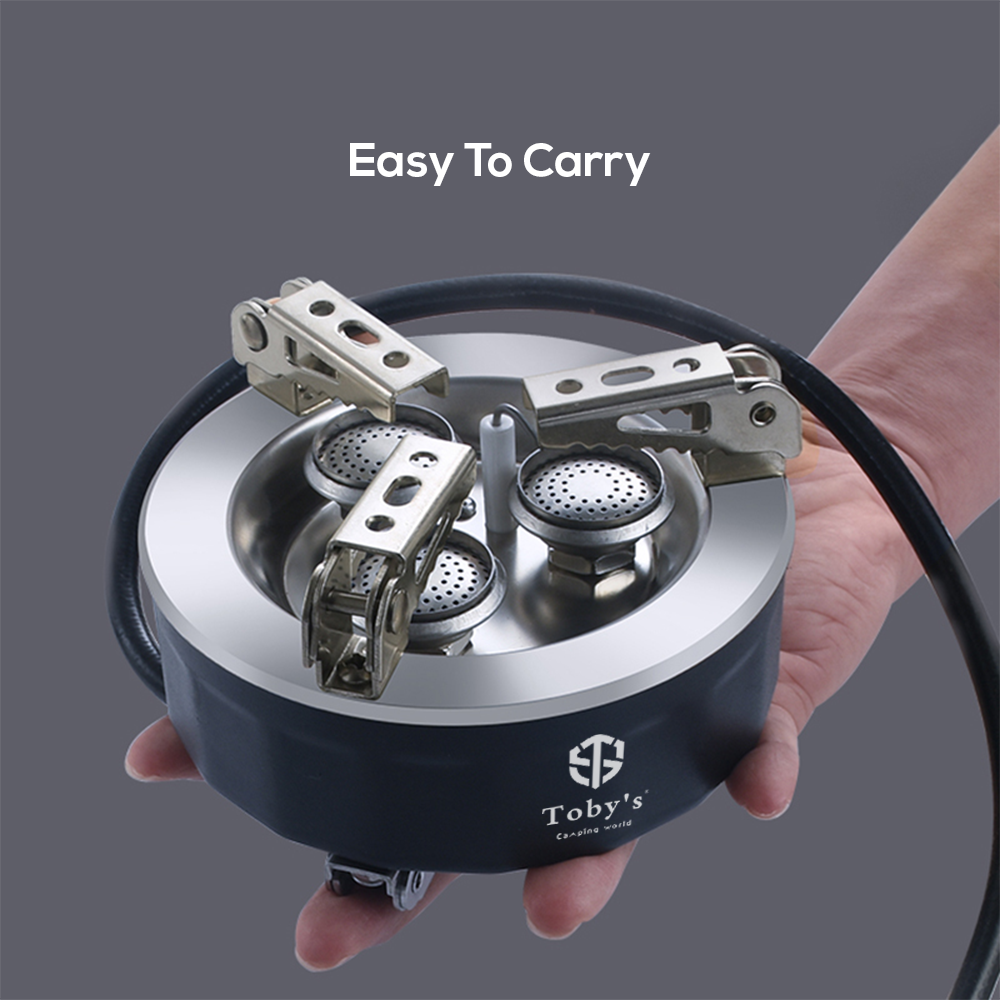 - 🔥【6800W High Power & Gas Saving】: The copper adapter ensures efficient heat transfer, minimizing gas waste. And 3-core triangle design, ensures even heating, maximizing power utilization. With an impressive 6800W high power output, the Toby’s camp stove allows you to boil 1 Liter water in just 1 minute.
