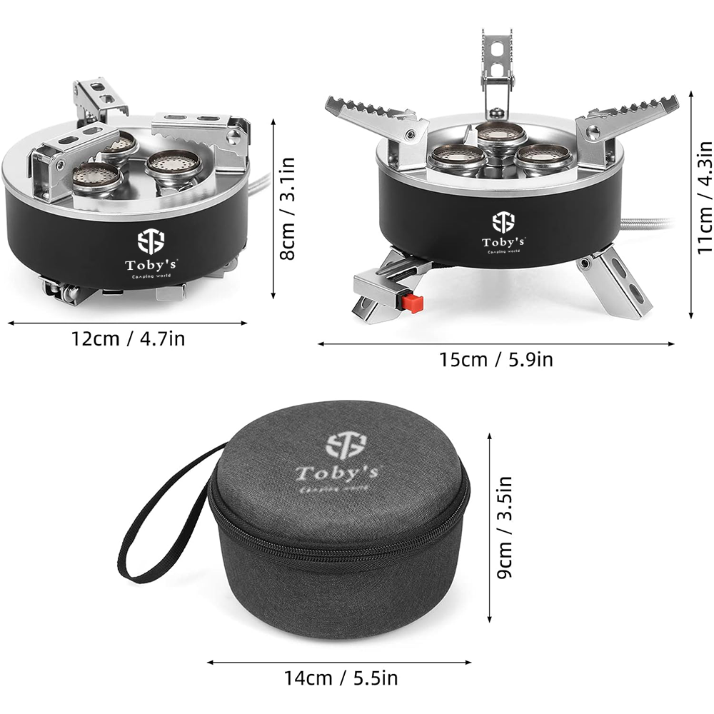 - 🔥【1.2lbs Weight & Palm-Sized】: The folding camp stove measures a mere 4.3 inches in width and 3.1 inches in height, allowing it to fit snugly into the included storage case. Weighing just 1.2 lbs, Toby’s backpacking stove offers the same power as regular camping stoves with half the load. Whether you’re backpacking, hiking, or camping, this mini camping stove won’t take up much space and weight in your gear.
