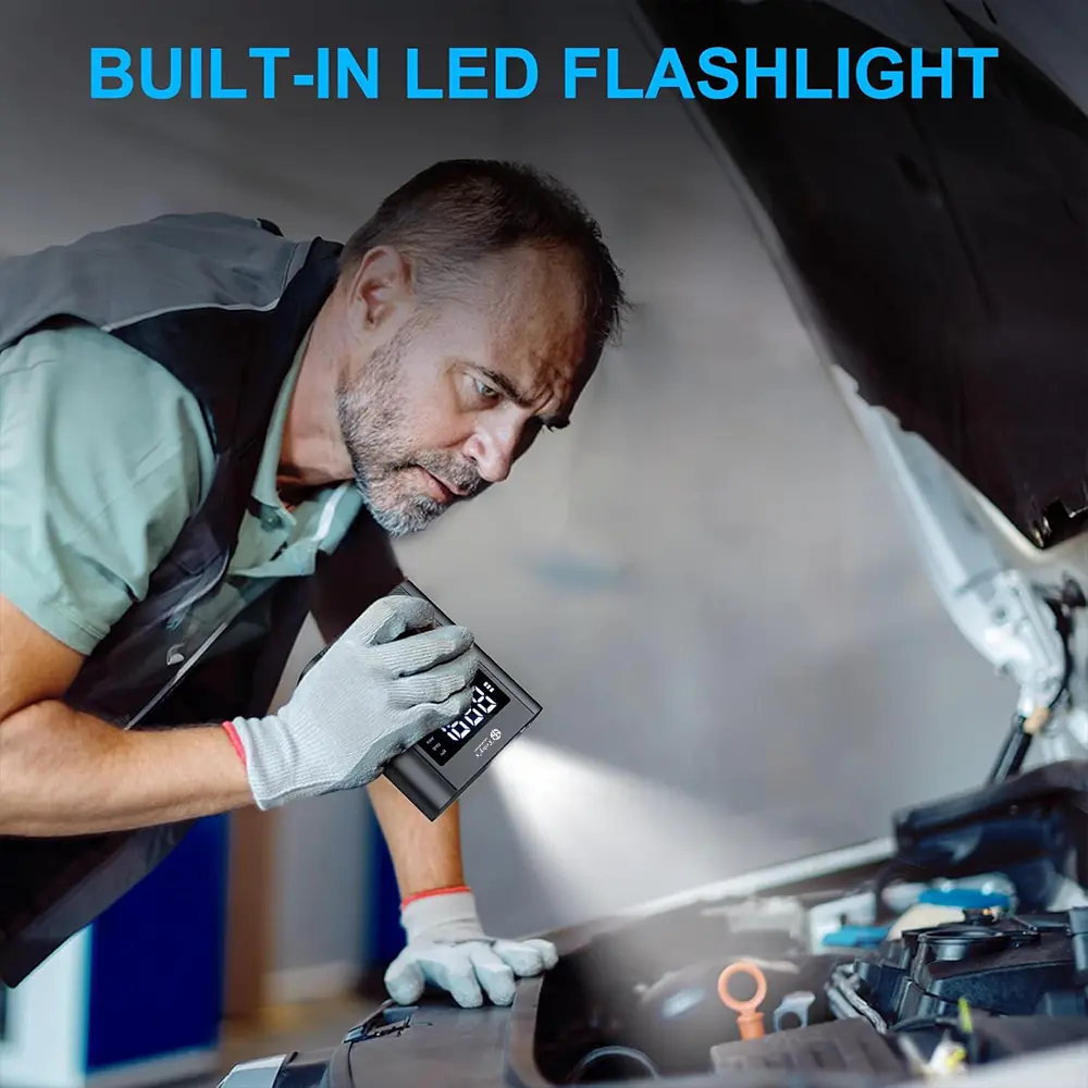 𝐕𝐞𝐫𝐬𝐚𝐭𝐢𝐥𝐞 & 𝐌𝐮𝐥𝐭𝐢𝐟𝐮𝐧𝐜𝐢𝐭𝐨𝐧𝐚𝐥 – The portable air compressor offers more than just inflate car tires with ease, it also comes complete with attachments for bicycle, basketball, and various sport equipment, show its versatility. The top-mounted LED light allows for inflation or tire changing in the dark. With its massive 20000mAh battery, it can power smartphone, tablet, and other device, providing reassurance during emergencies. This essential car addition is perfect for outdoor adventures, providing convenience and peace of mind.