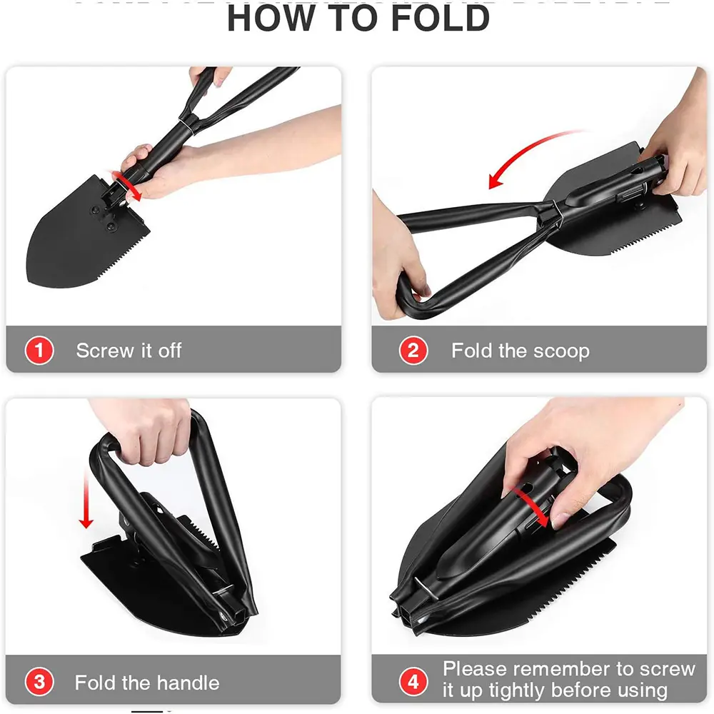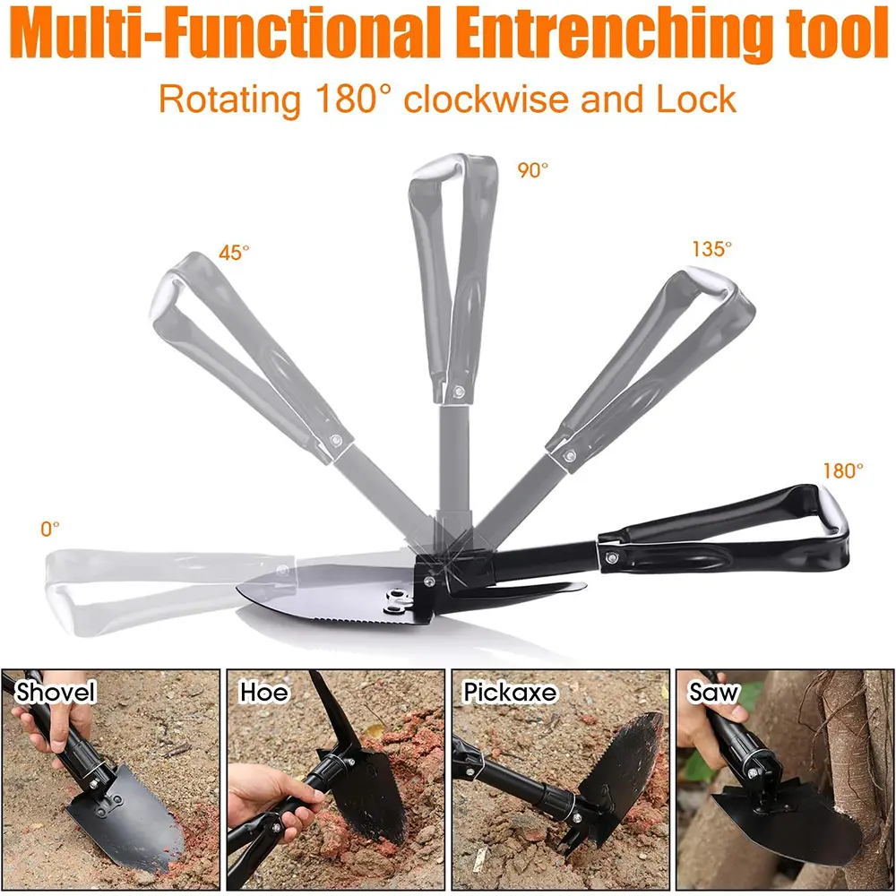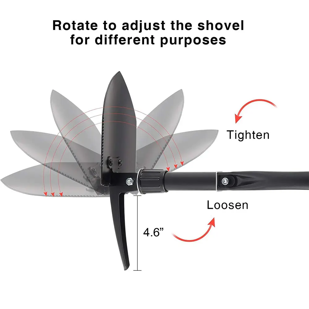 - Its multifunctional design allows it to be used as a shovel, pickaxe, hoe, or saw, making it suitable for camping, hiking, snow removal, and survival scenarios.