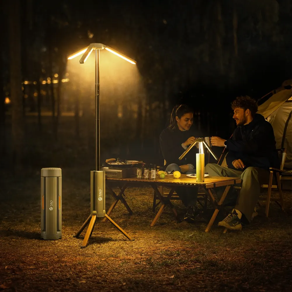 - The Toby’s CPL-S01 Rechargeable Camping Light is a powerful and versatile lighting solution designed for outdoor adventures, camping trips, emergency situations, and work environments. With its innovative adjustable tripod design and foldable light panels, this camping lantern can easily transform into a stand lamp, desk lamp, tent light, or handheld flashlight.