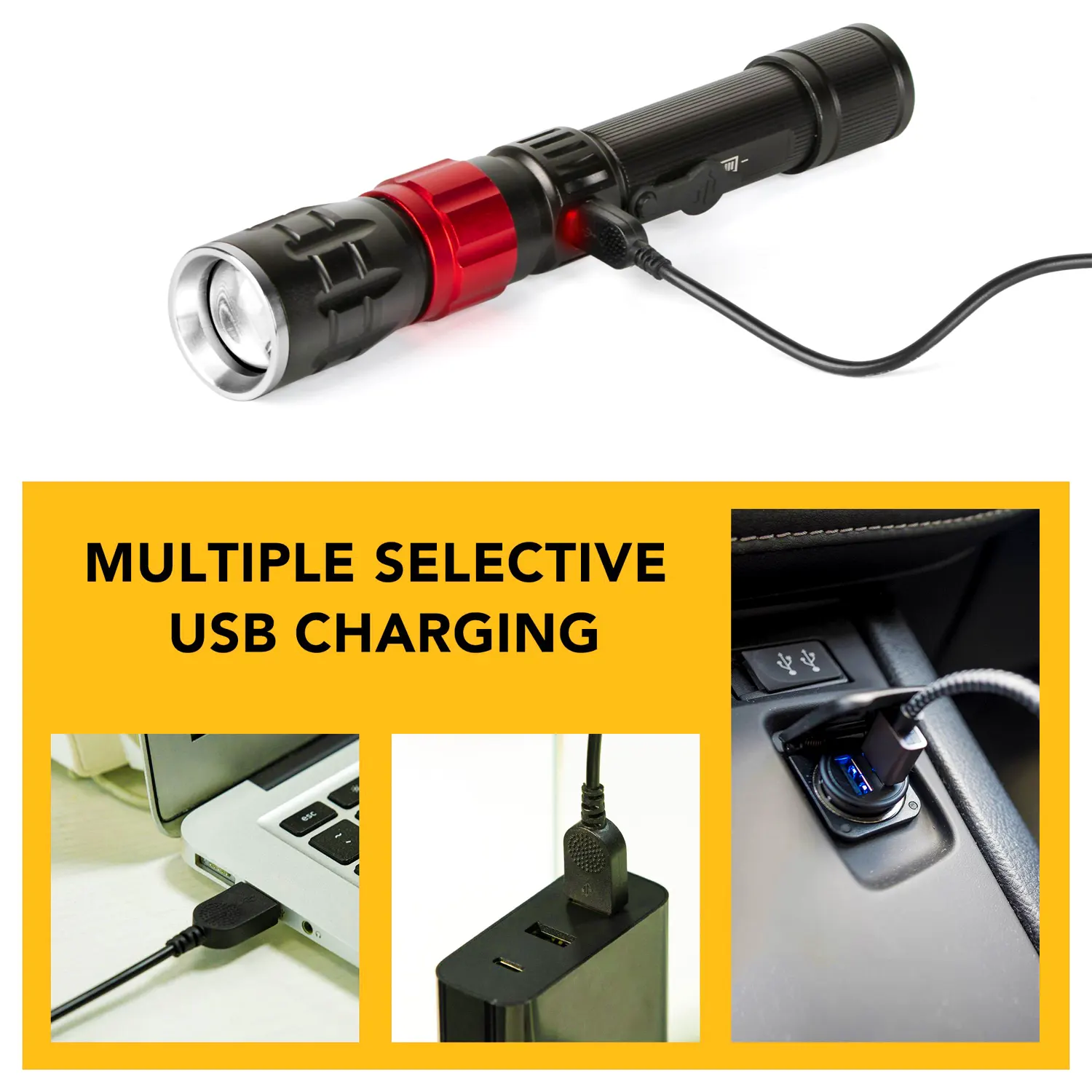 - USB Rechargeable Flashlight Toby’s provides a rechargeable and replaceable 3.7V 4000mAh lithium-ion battery high lumens flashlight, a USB cord for charging the device, the light can last up to 4hours(high)/16hours(low).