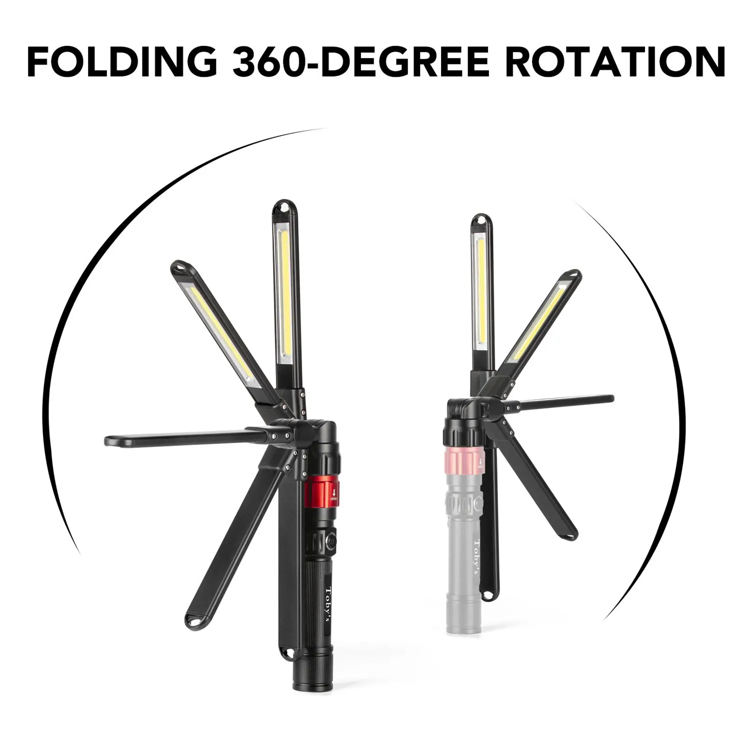 - Adjustable Focus & Rotary Spotlight flashlight can help you to find cats, dogs, and other lost items easier. The LED work slim bar foldable light can rotate 360 horizontally, provides multi-angle illumination, and Emergency Lights For Home Power Failure.