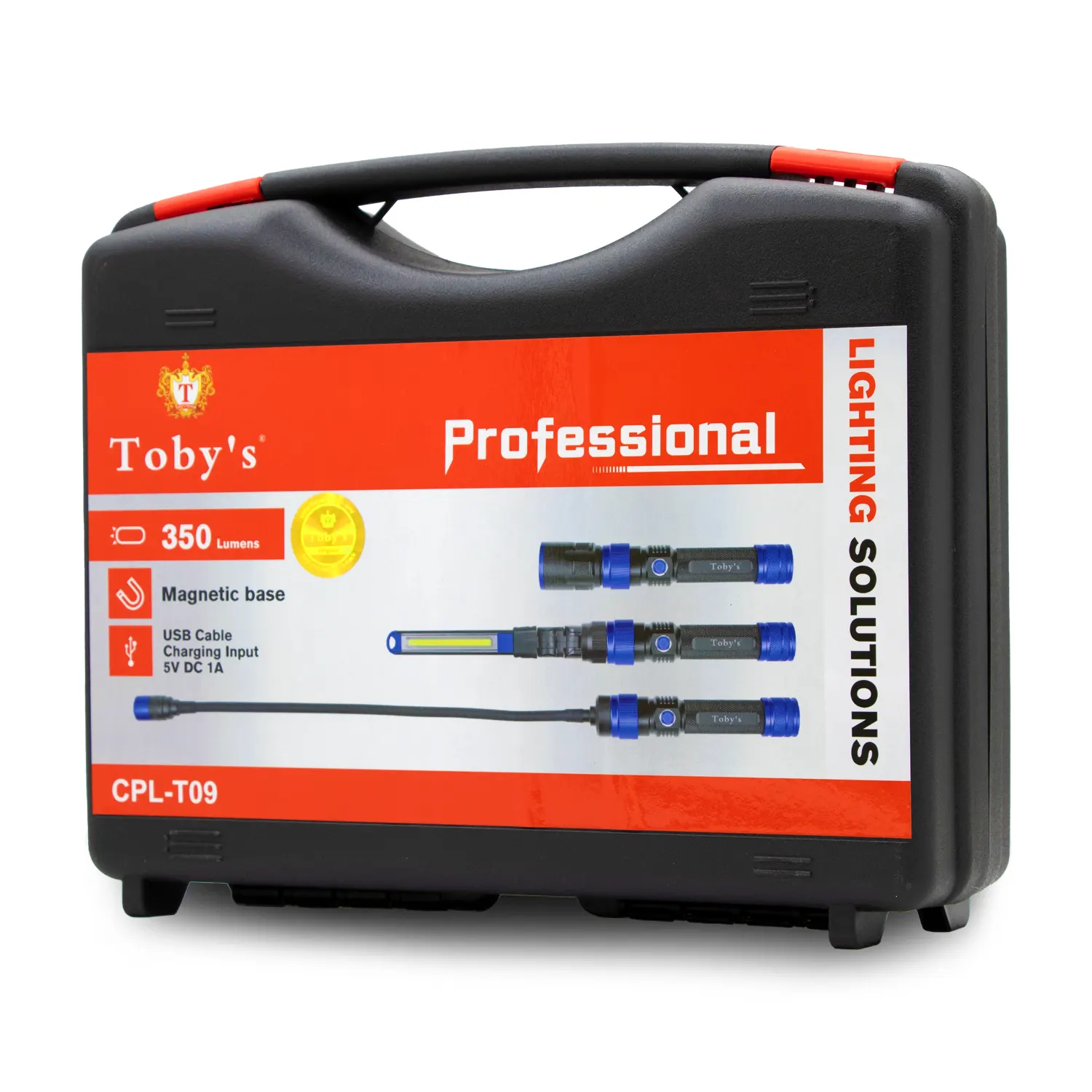 Toby’s CPL-T09 3 in 1 Quick Connect Rechargeable Led Work Light Kit with Magnetic Base, LED Flashlight with Flexible Gooseneck Light and Slim Bar Light,4000MA Battery and USB-C Charge