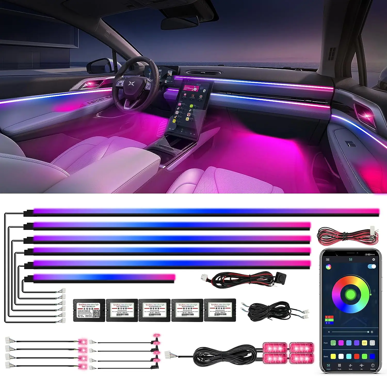 Toby’s Dream color Acrylic Interior Car LED Strip 18 in 1 Light with Wireless APP RGB LEDs Fiber Optic Ambient Lighting Kits 16 Million Colors Sound Active Function Car Neon Lights