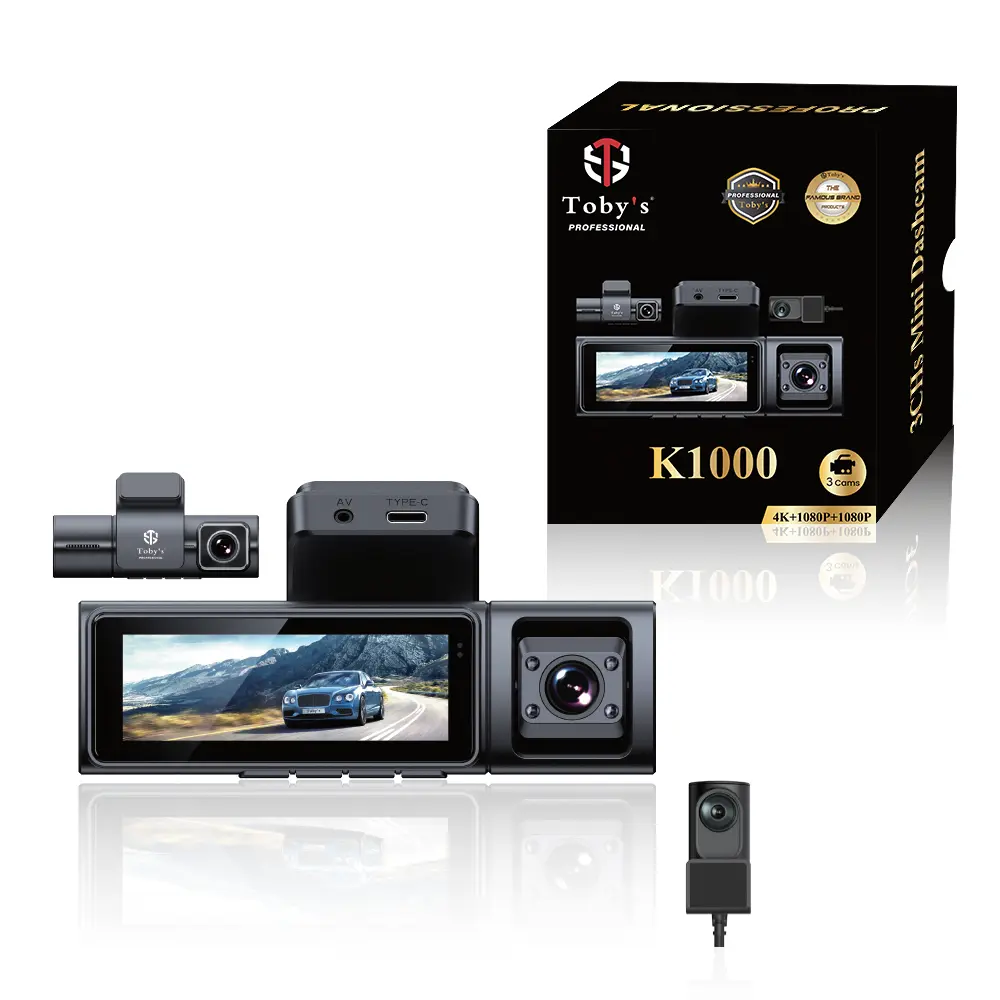 - Toby’s K1000 3CHs Mini Dashcam provides complete protection with its triple-camera setup, covering the front, cabin, and rear simultaneously for maximum safety and evidence capture.