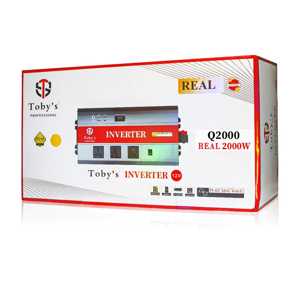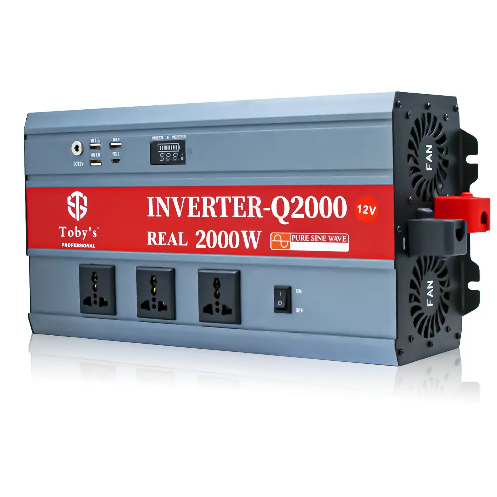 Toby’s New 2000W Car Power Inverter 12V to 220V Ac Power Converter, Front LED Display, Pure Sine Wave Inverter For Laptop, Tablet, Solar System, Camping ( Q2000 )