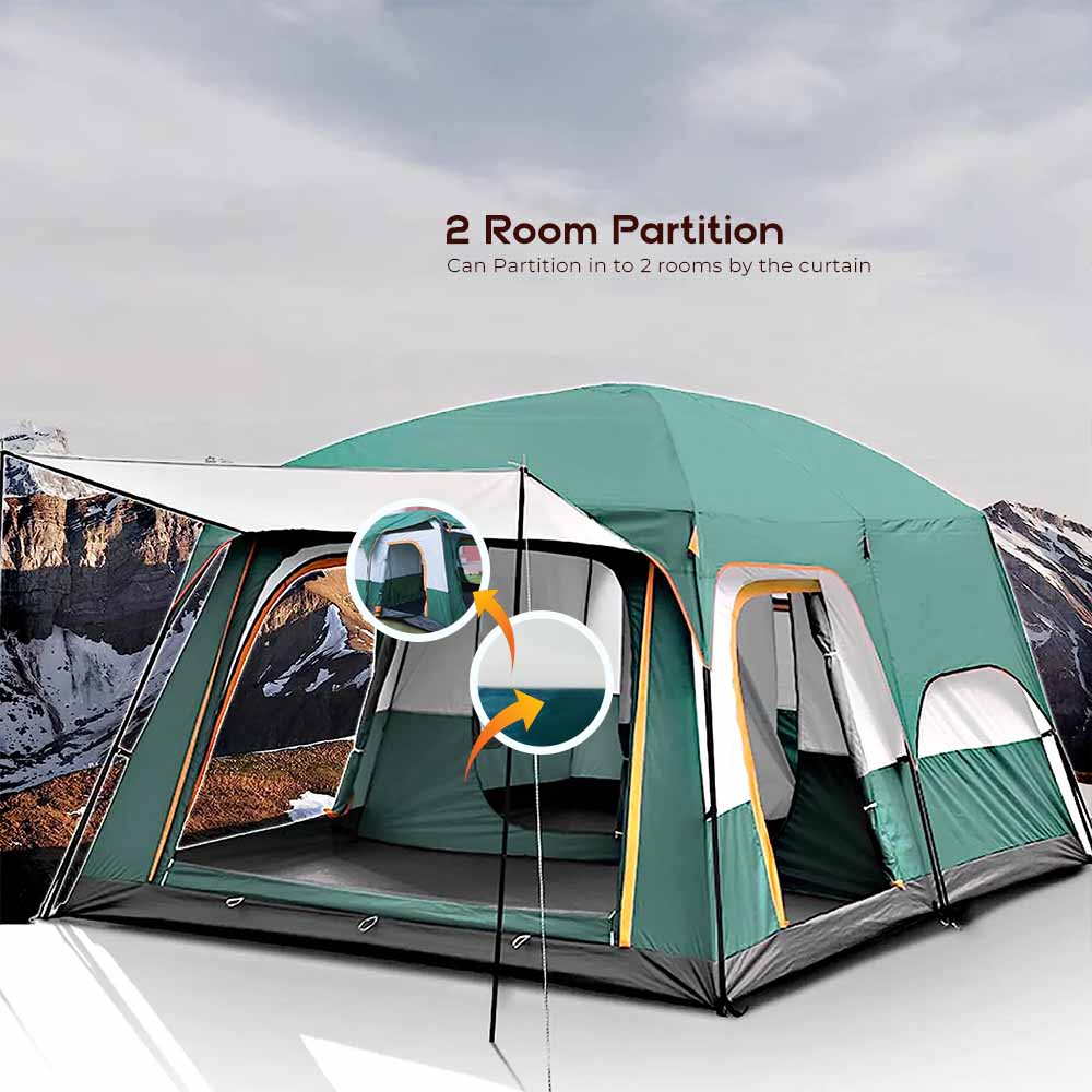 Toby’s New 6-8 Person Double Layer Outdoor Camping Tent, A Bedroom And A Living Room, Family Cabin (Green)
