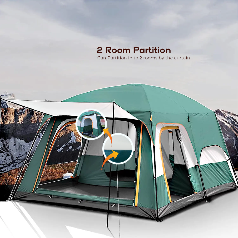 Toby’s New 8-12 Person Double Layer Outdoor Camping Tent, A Bedroom And A Living Room, Family Cabin (Green)