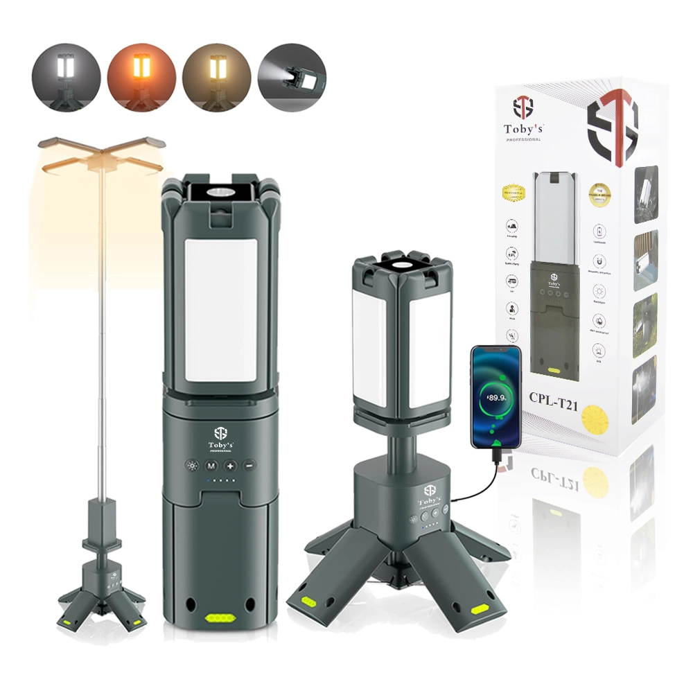 Toby’s New CPL-T21 Telescopic Camping Lights Rechargeable 14000mAh, LED Collapsible Camping Lantern Portable with RGB/SOS Light and Magnetic Base IPX5 Waterproof for Hiking Camping Emergency