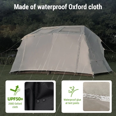 - Spacious for 4-6 person: The inflation size is 360*240*200cm, it accommodates 4-6 people, suitable for all seasons. Great for camping, hiking, fishing, hunting, backpacking, and beach activities.