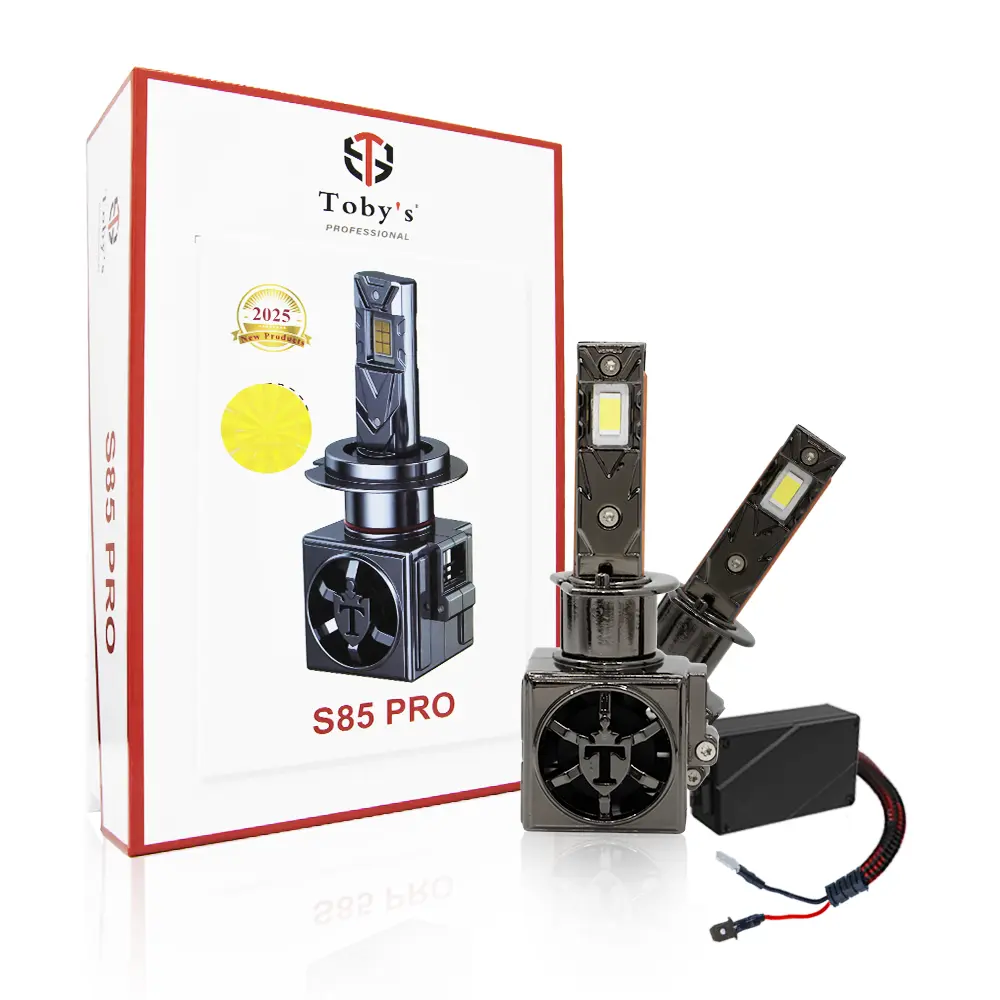 - Toby’s S85 PRO LED headlight bulbs are equipped with high efficiency LED chips and 6500K Xenon white. The H1 LED headlight kit outputs 500% brighter. Providing you with a wider field of view, you can clearly see pedestrians, animals, obstacles, etc. from 600 feet away. Safer driving at night. And it doesn’t make the driver across the street feel uncomfortable.