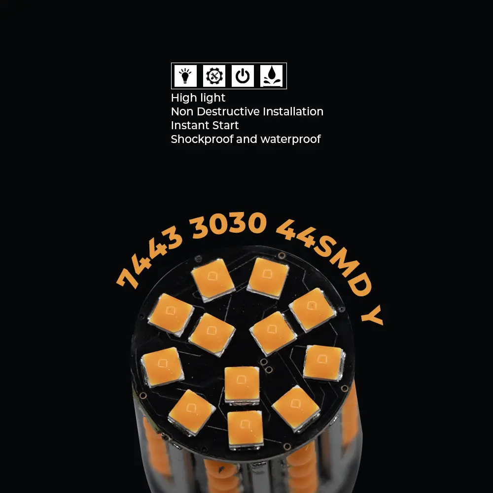 Tobys Super Bright Low Power 7443 44SMD LED Bulbs with 3030 Chip replacement for Back Up Reverse Brake Lights (Yellow)