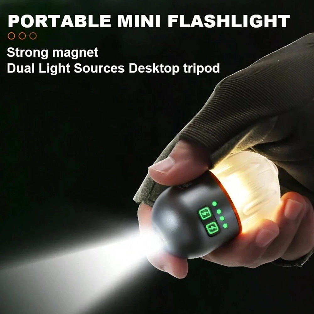 【Wide Applications】 Camping essentials of this Mini Lantern to use for outdoor when you in a tent or sitting by tables when camping, or go hiking use this camp light as a backup Outage when emergency, work as a lampara rechargeable when fishing outside, also available to work as a flashlight rechargeable at home for emergency or reading.