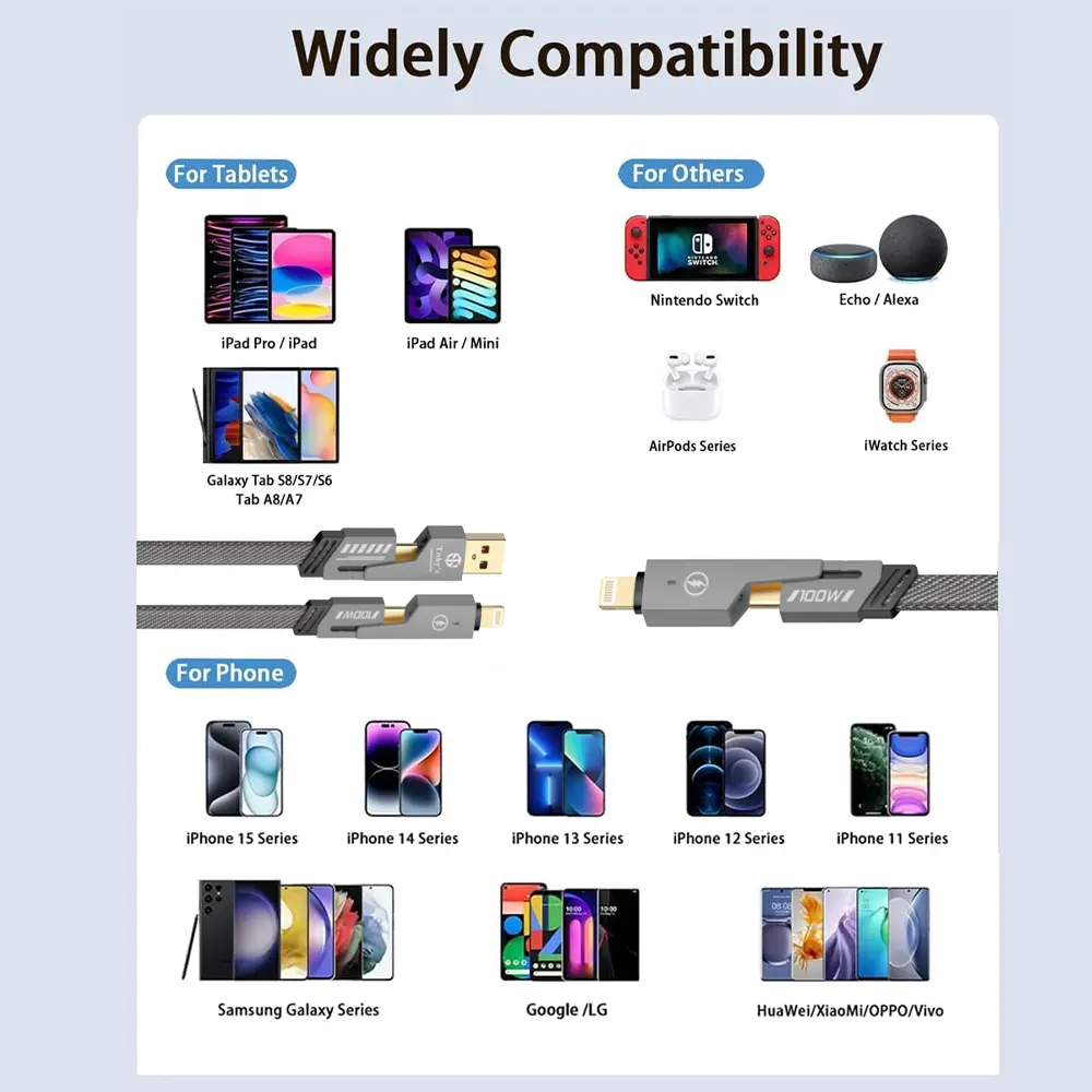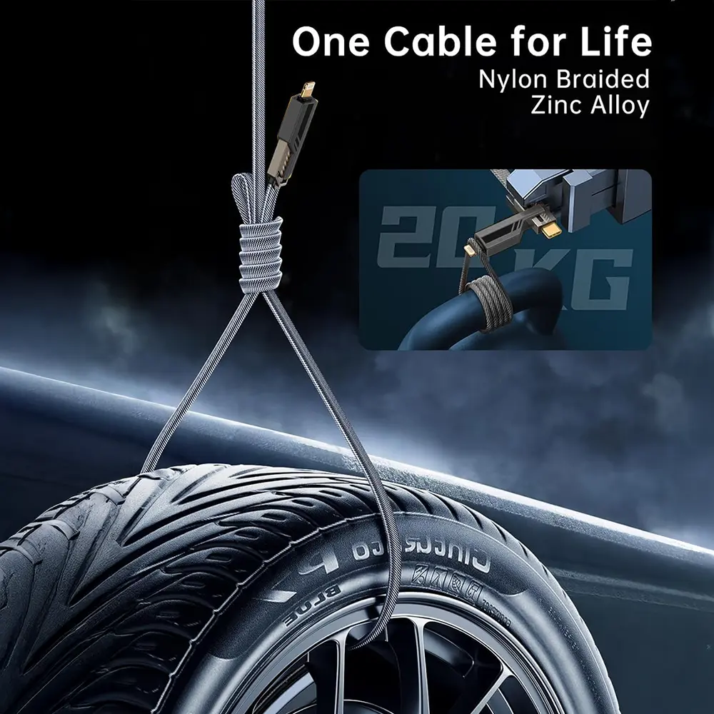 - 4-in-1 cable: USB-A & USB-C to Type-C + Lightning