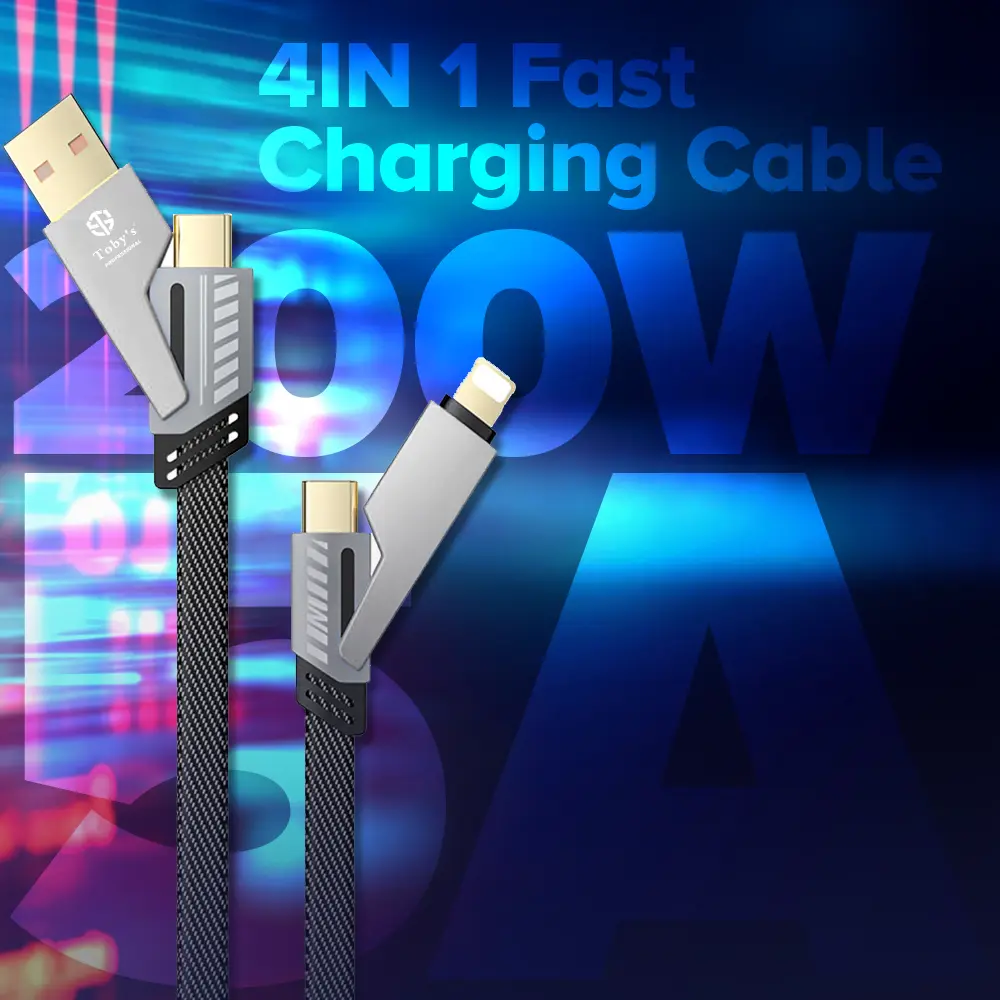 Toby’s Professional CC-07 4 in 1 Fast Charging Cable 200W USB A & USB C to Type C + Lightning, Nylon Braided Heavy-Duty Cable