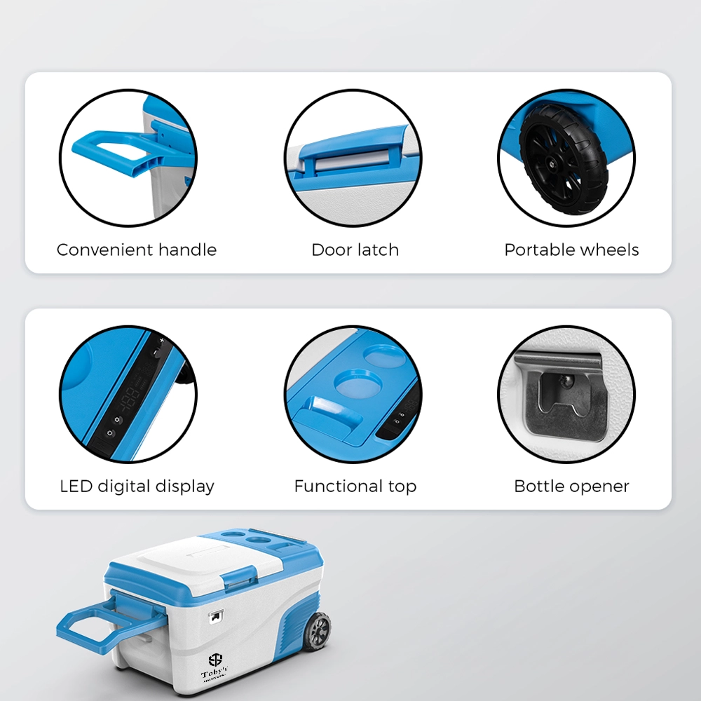 Tobys TR-32 Rechargeable 32L Portable Fridge Freezer 60W Compressor, APP Control, Removable Battery, 12V/24V/AC Power, Low Noise 45dB, Fast Cooling to -20 Degree C, With Wheels And Handle