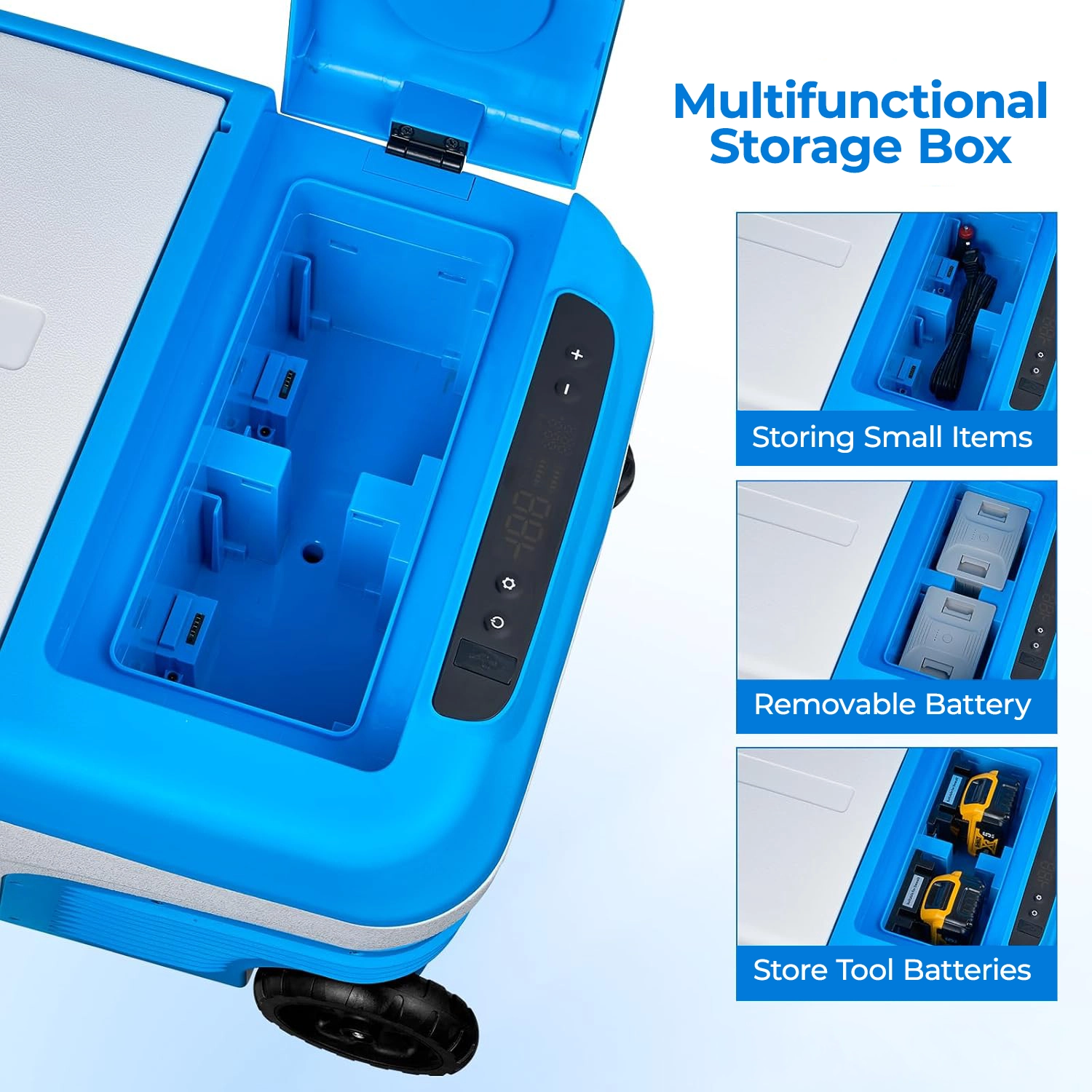 - Multifunctional Top Box – Store small items or tool batteries
