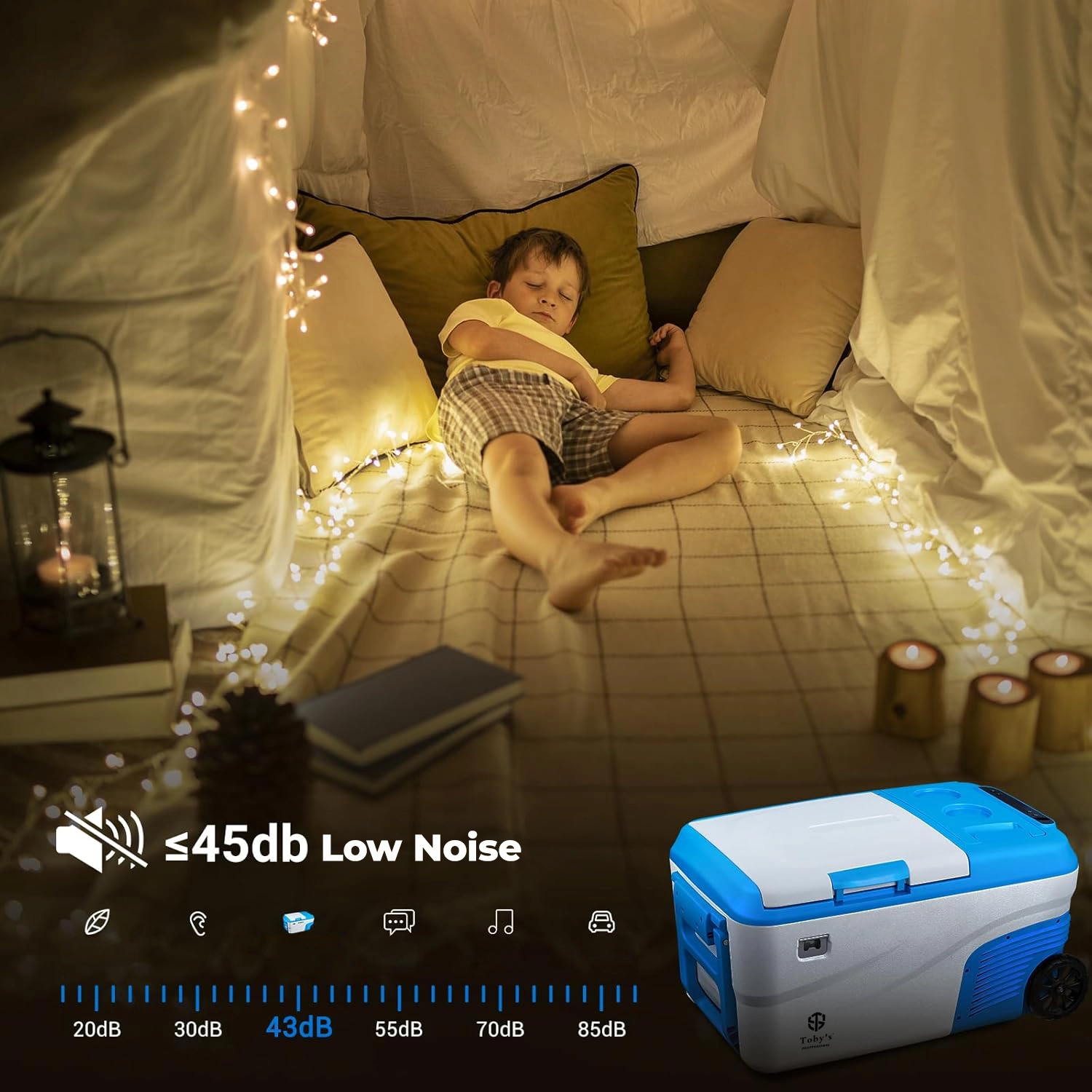 - Quiet operation ≤45 dB, runs quieter than a normal refrigerator. Perfect for sleeping in tents, cars, or homes without disturbance.