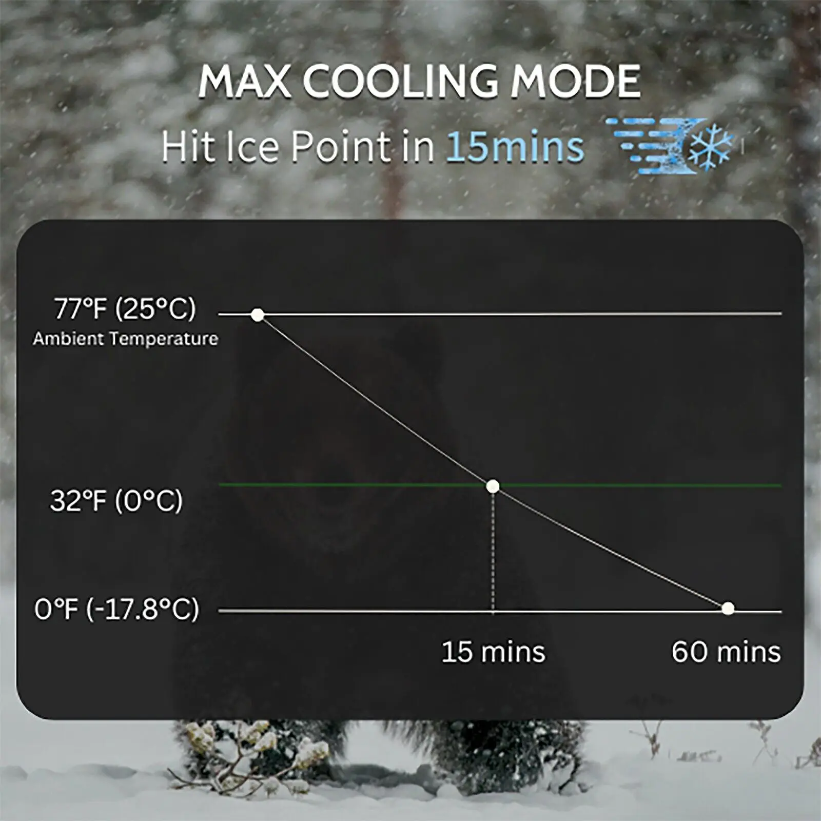 - Fast cooling compressor cooling technology, You could also choose ECO mode for energy-saving or MAX mode for fast cooling(the temperature of empty container or environment can’t exceed 89.6 ℉).