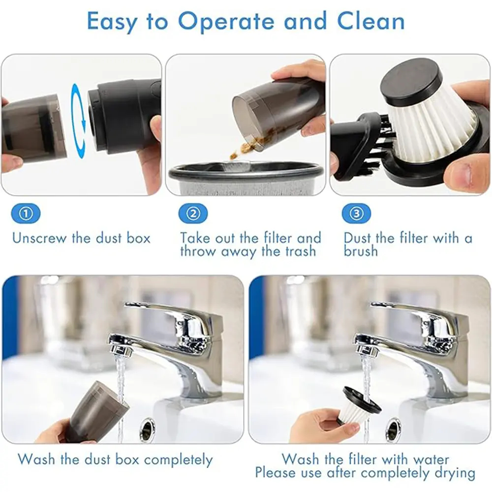 - Easy to Maintain and Clean The handheld vacuum is equipped with HEPA filters and both filters can be disassembled for cleaning, making it more durable and easier to maintain than regular filters.