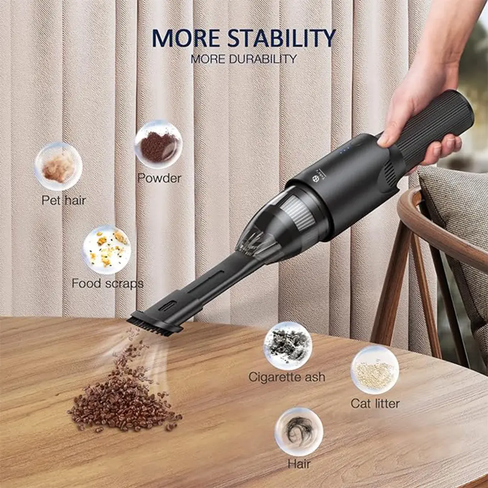 - Cordless Mini Vacuum This lightweight handheld vacuum provides incredible suction and cleaning performance to quickly remove hair, crumbs, dust, sand and dirt.