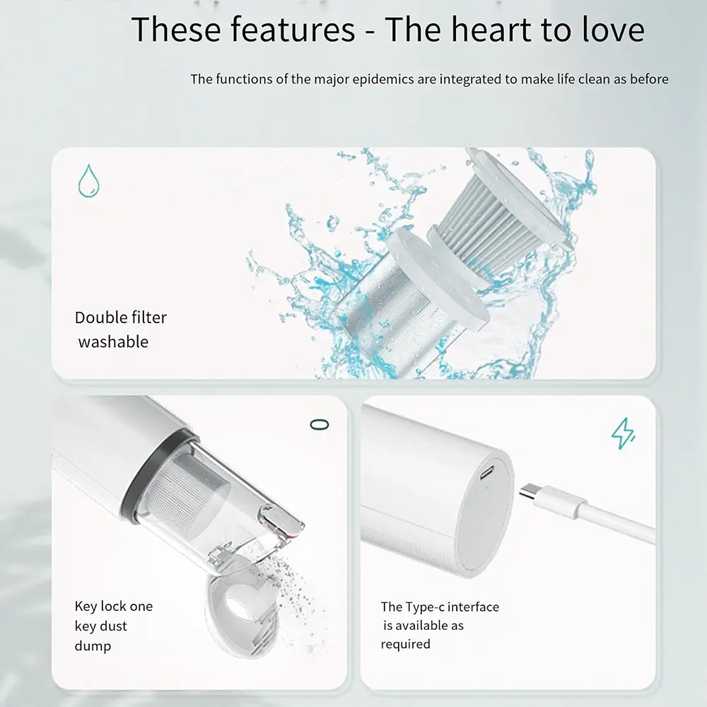 - Easy to use: quick disassembly and assembly in 3 seconds, safe to use. The product is compact, and the Car Vacuum Cleaner is easy to carry. It is more efficient and faster at home and in the car. It is designed for practical applications and can be used by both men and women, making the experience more comfortable.