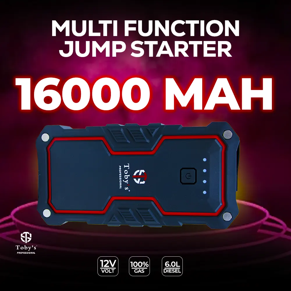 - The Toby’s X16 is a compact 12-volt jump starter and power bank designed to provide dependable help when a vehicle battery is low.