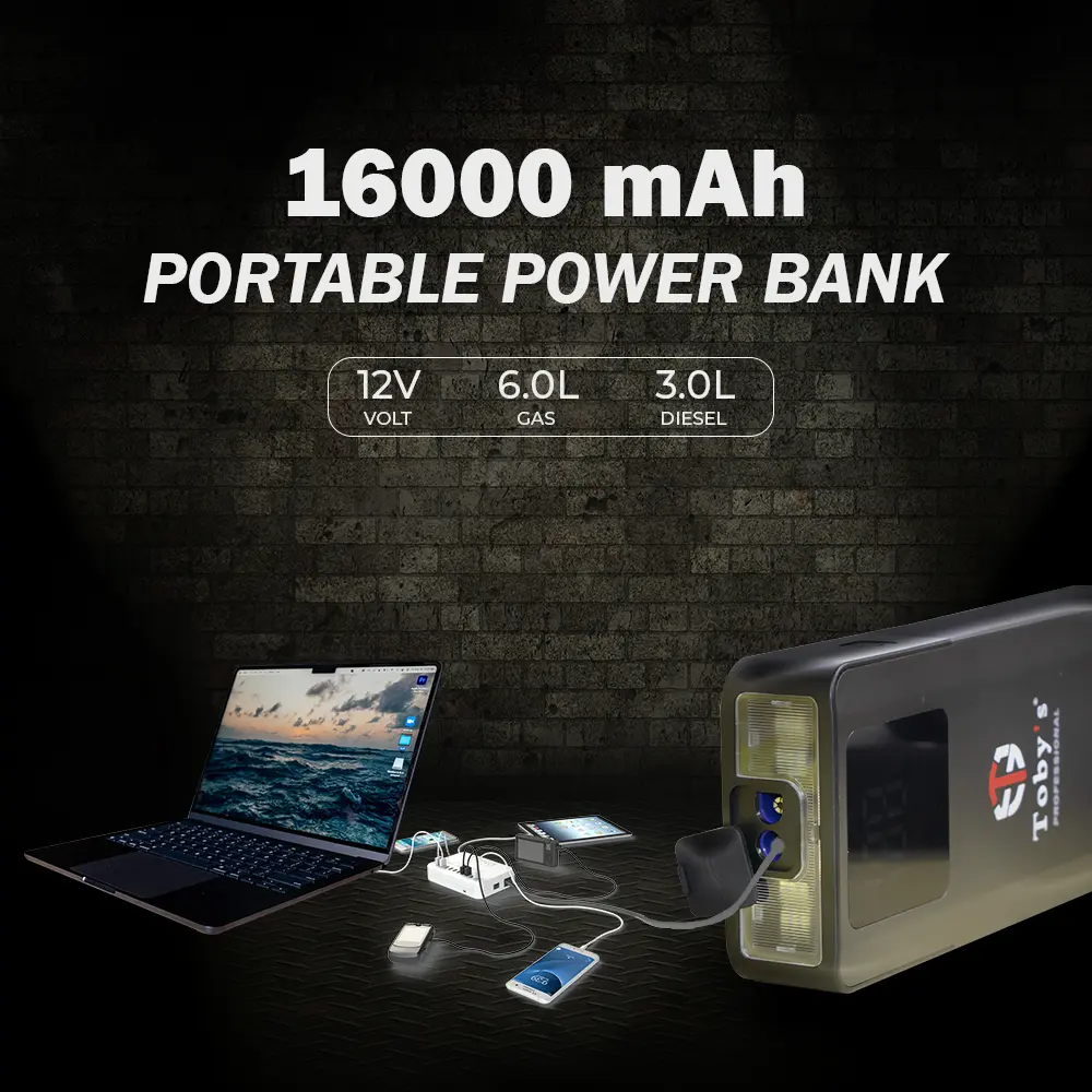 Toby’s X20 (T66 Pro) Jump Starter For Cars 16000mAh And 59.2WH Power Bank For Electronic Devices