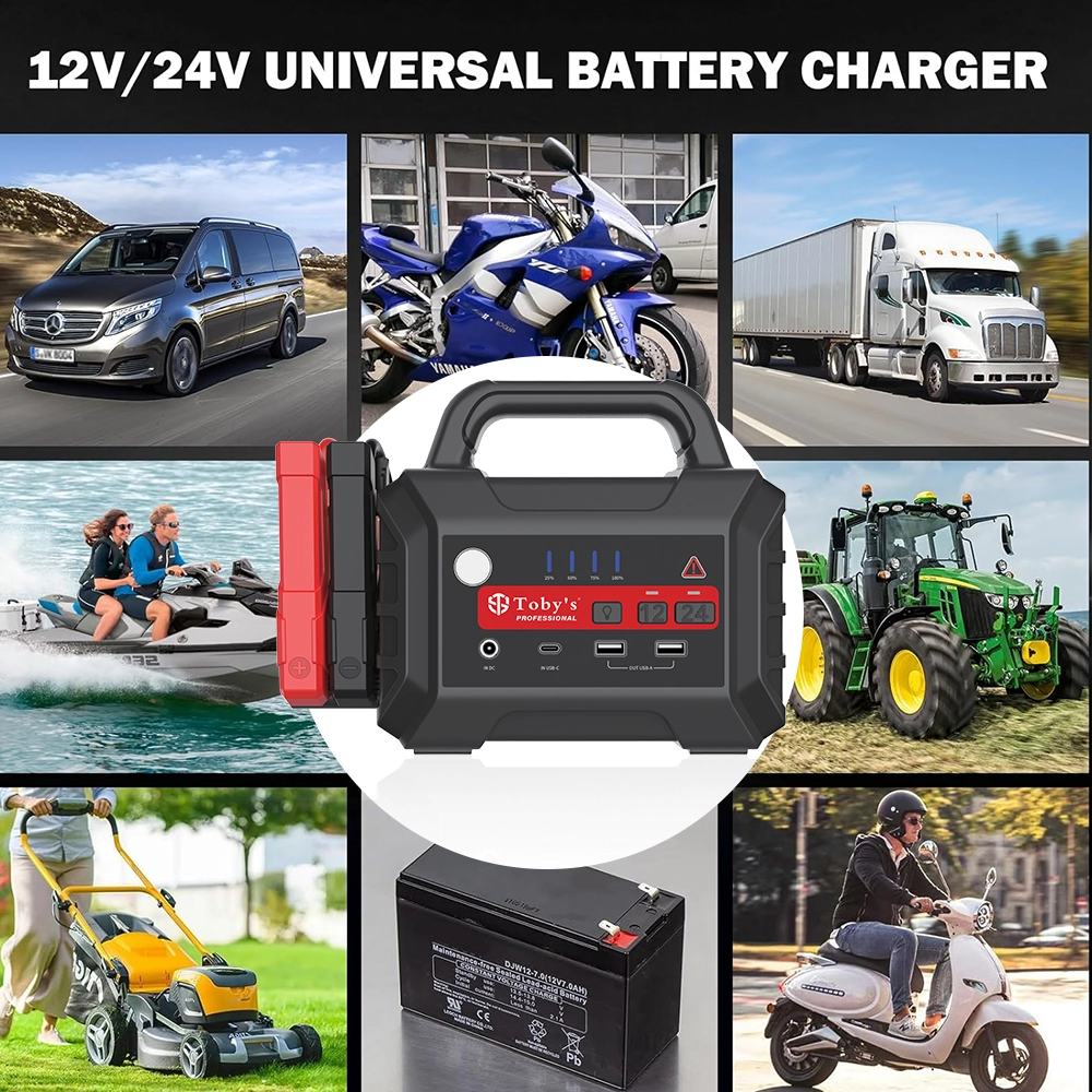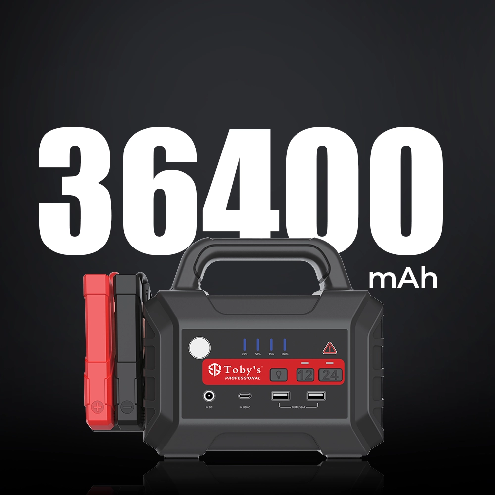 Toby’s X23 12V/24V Jump Starter 36400mAh 2800A Peak Heavy Duty Car & Truck Battery Booster with LED Light, USB Output & Fast Charging for SUV, Bus, Tractor & Diesel Engines
