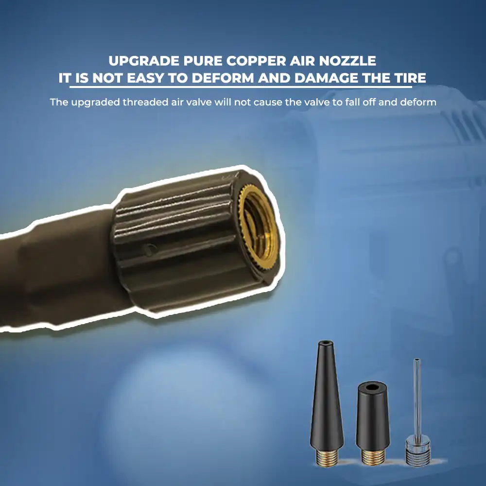 - Step 3: Press the power switch of the air pump. After the air pump starts normally, connect the tire valve and inflate to the set resin and then stop automatically.